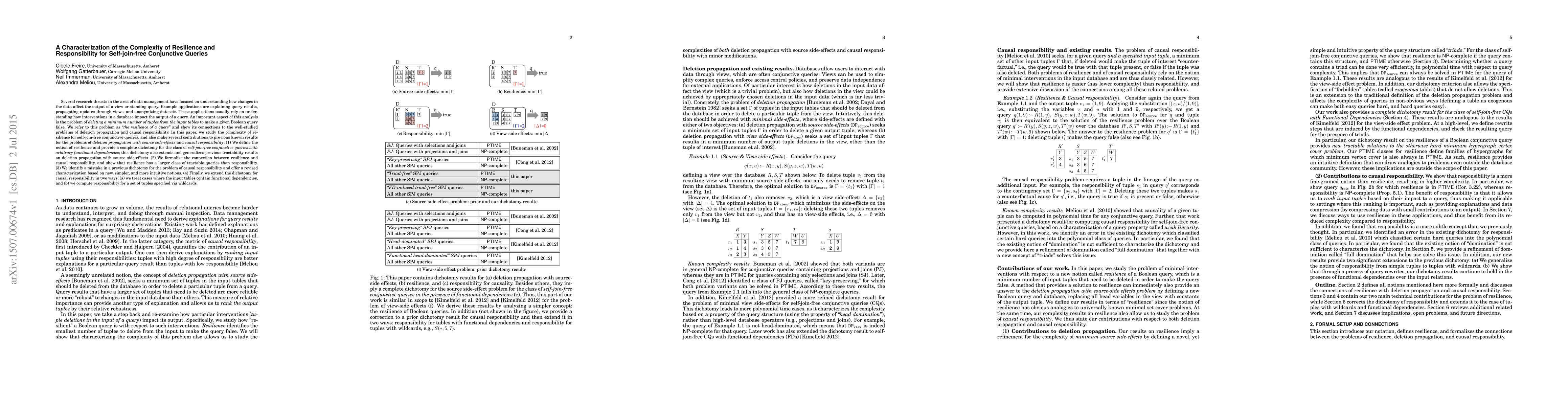 This paper characterizes the complexity of resilience and responsibility for self-join-free conjunctive queries, establishing a complete dichotomy for resilience and correcting previous results on causal responsibility. It also extends the understanding of deletion propagation and introduces new, simpler notions for causal responsibility.