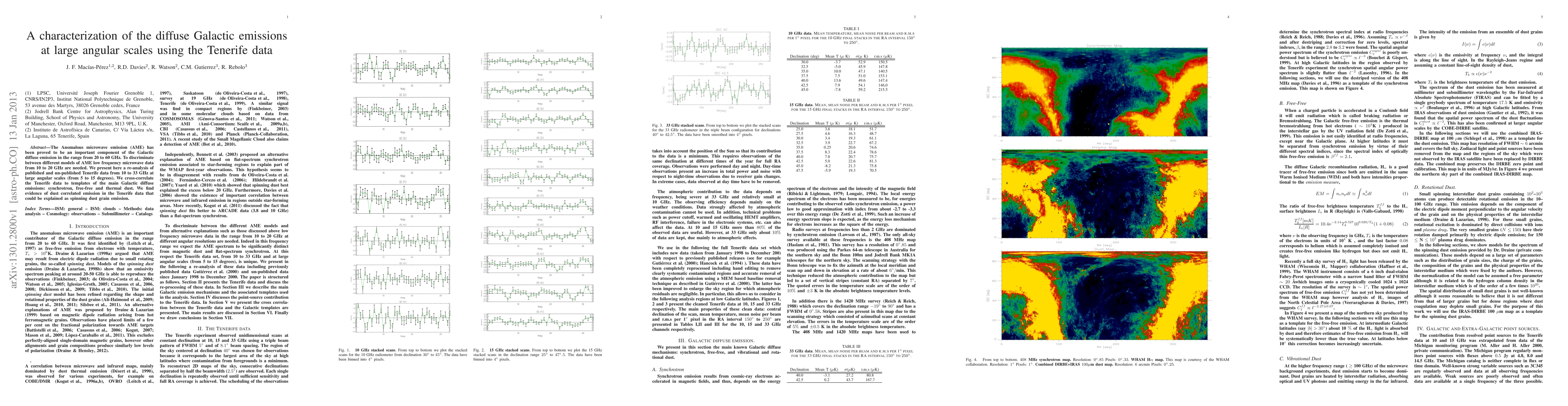 This paper re-analyzes Tenerife data from 10 to 33 GHz to identify diffuse Galactic emissions, finding evidence of dust-correlated emission potentially attributable to spinning dust grains, aiding in distinguishing between different models of Anomalous microwave emission.