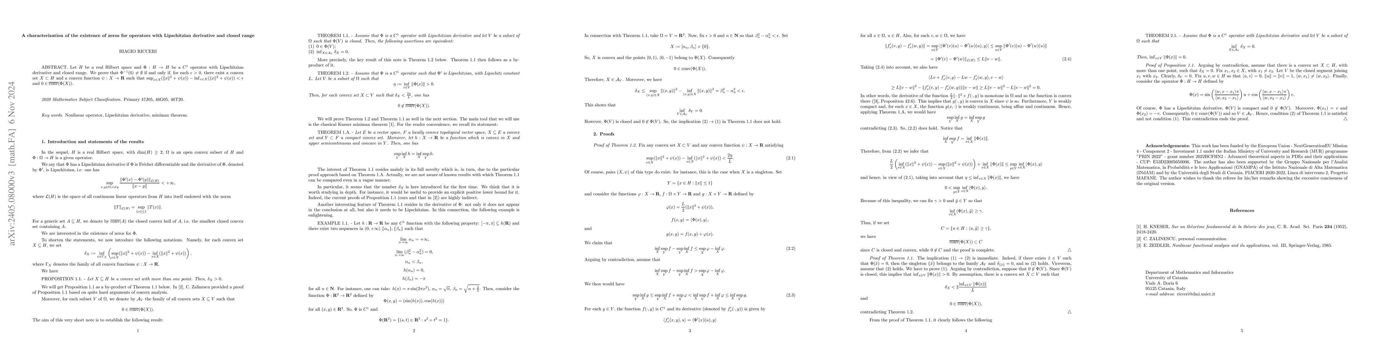 Let $H$ be a real Hilbert space and $\Phi:H\to H$ be a $C^1$ operator with Lipschitzian derivative and closed range. We prove that $\Phi^{-1}(0)\neq \emptyset$ if and only if, for each $\epsilon>0$, there exist a convex set $X\subset H$ and a convex function $\psi:X\to {\bf R}$ such that $\sup_{x\in X}(\|x\|^2+\psi(x))-\inf_{x\in X}\|x\|^2+\psi(x))<\epsilon$ and $0\in \overline{conv}(\Phi(X))$.