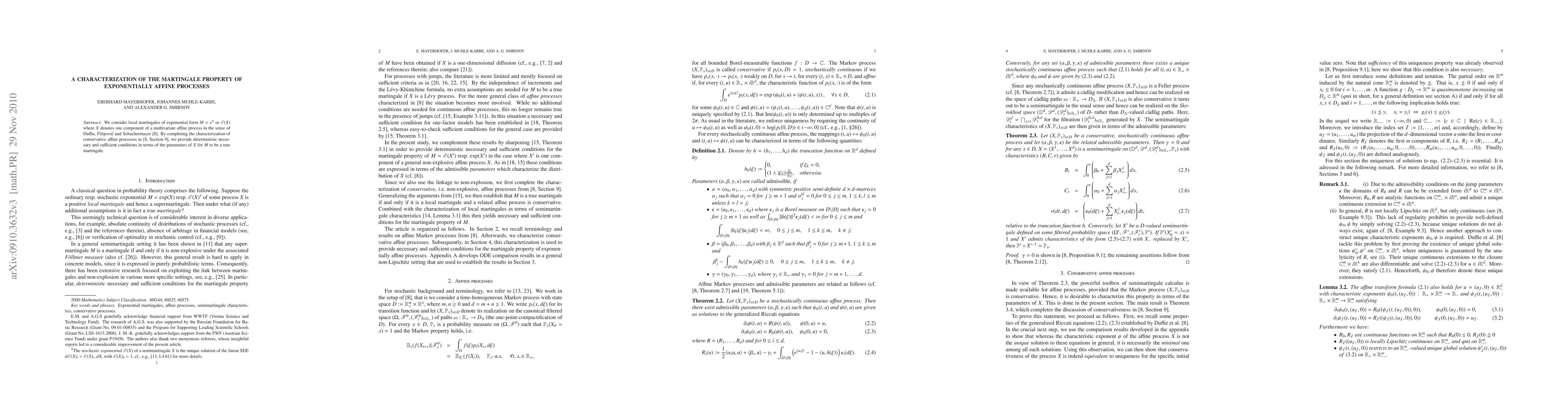 The paper characterizes the martingale property of local martingales in exponentially affine processes, providing necessary and sufficient conditions for a stochastic exponential to be a true martingale based on its parameters.