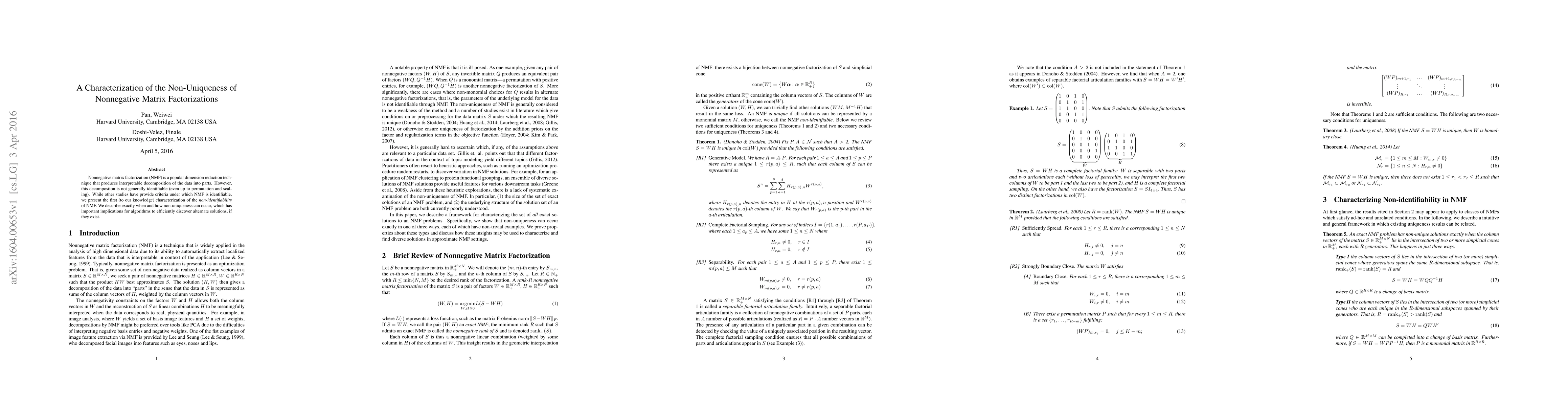 This paper characterizes the non-uniqueness of nonnegative matrix factorizations (NMF), revealing conditions under which NMF solutions are not identifiable. It provides a comprehensive understanding of when and how non-uniqueness occurs, which is crucial for developing algorithms to find alternative NMF solutions.