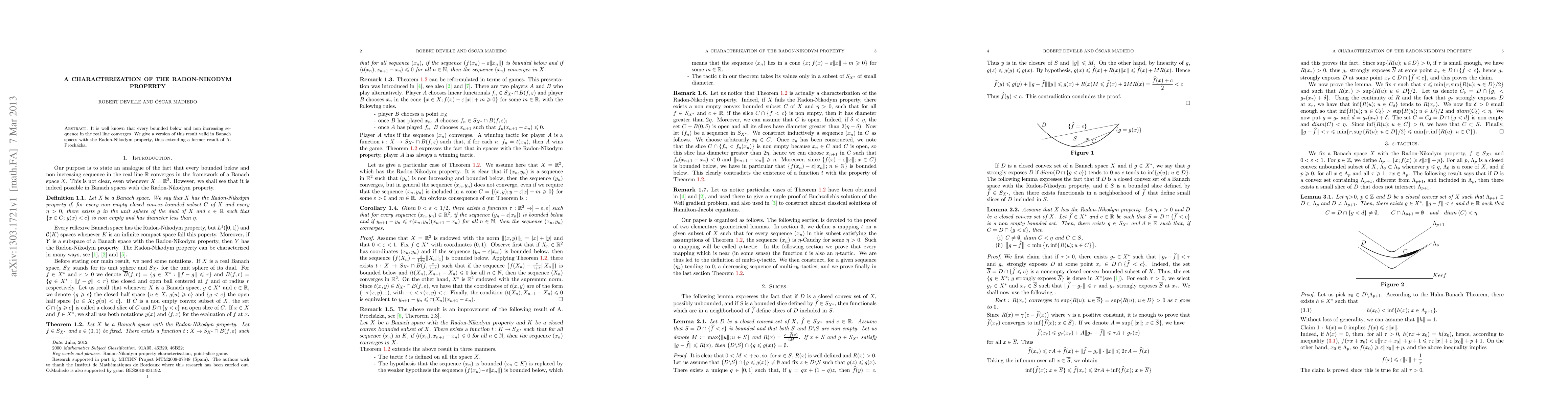This paper extends a classical result about bounded below and non-increasing sequences in real analysis to Banach spaces with the Radon-Nikodym property, thereby broadening the applicability of a theorem previously established by A. Proch\'azka.