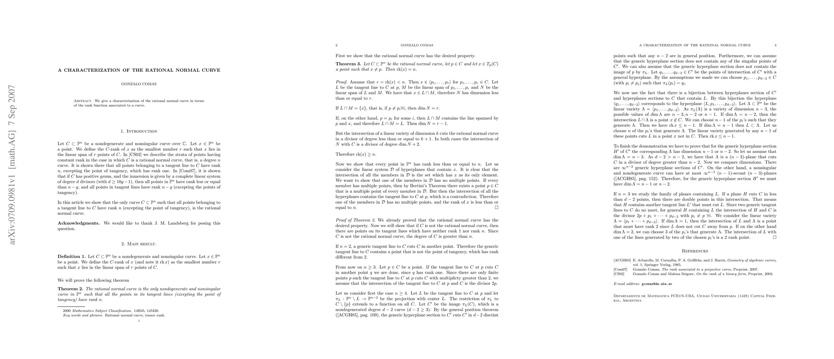 Summary: This paper characterizes the rational normal curve using the rank function linked to a curve, providing a novel perspective on its geometric properties. The findings offer a deeper understanding of the curve's structure.