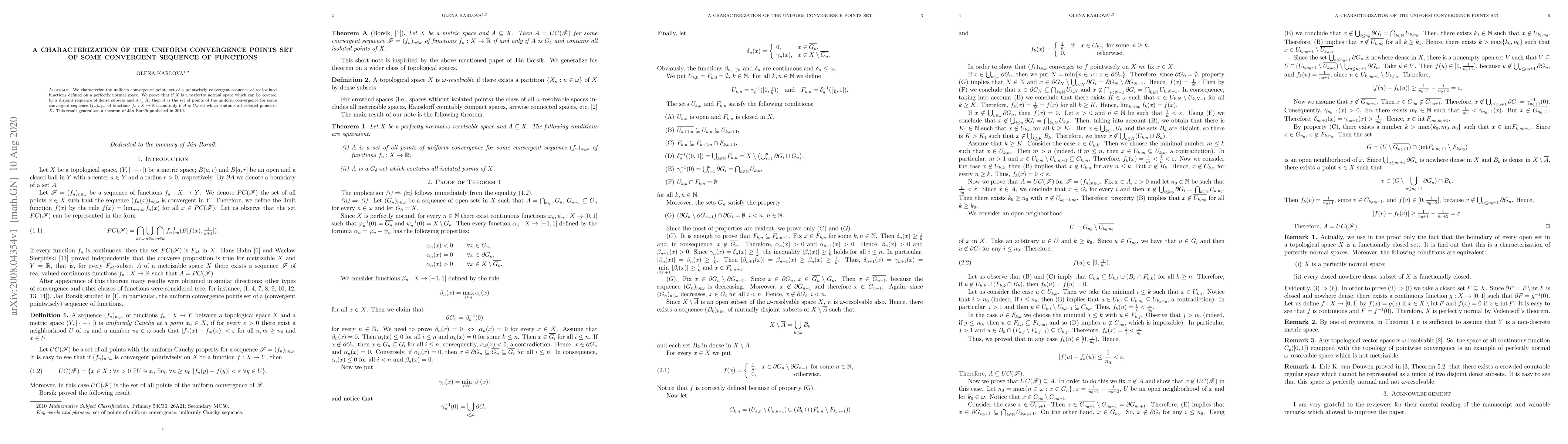 The paper characterizes the set of points where a sequence of real-valued functions converges uniformly on a perfectly normal space, generalizing a previous theorem.