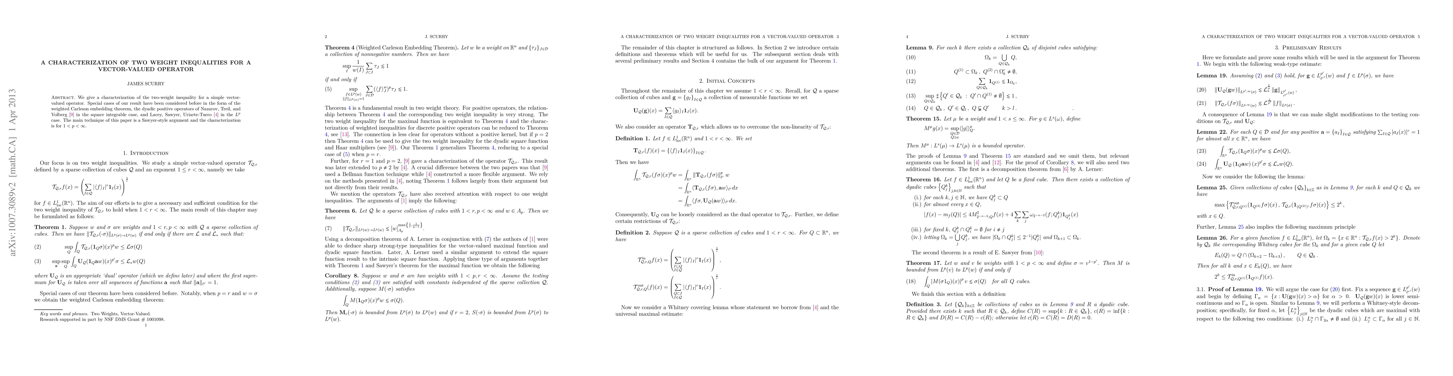 This paper characterizes two-weight inequalities for a novel vector-valued operator using a Sawyer-style argument, extending previous results in the weighted Carleson embedding theorem and dyadic operator theory for 1 < p < ∞. The study marks the first attention to this operator in the context of two-weight inequalities.