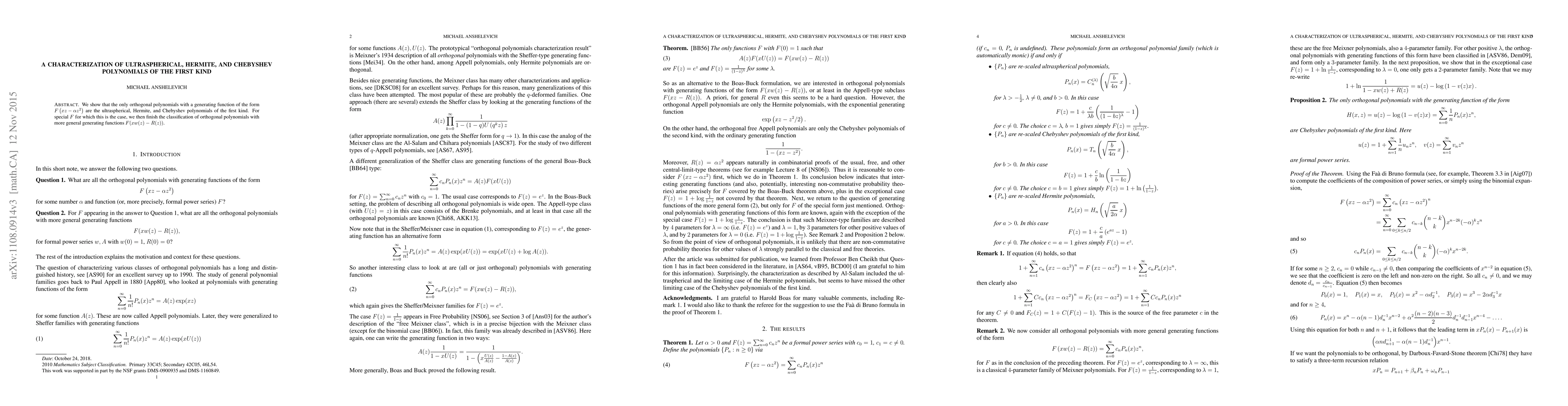 Summary: The paper classifies orthogonal polynomials with a specific generating function as ultraspherical, Hermite, and Chebyshev polynomials of the first kind. It also extends the classification to polynomials with more general generating functions.