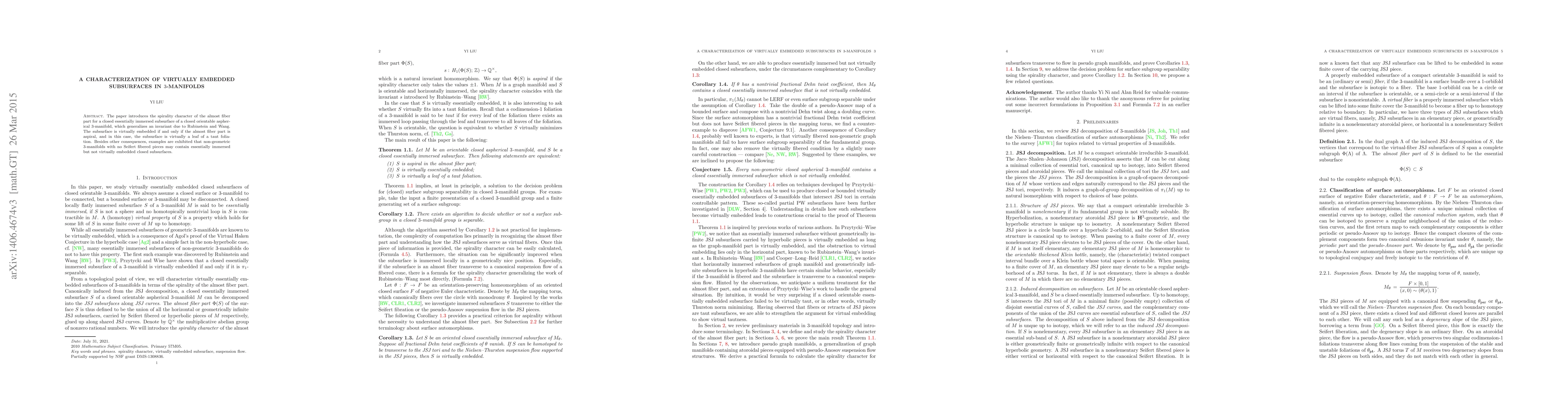 The paper introduces the spirality character of the almost fiber part for a closed essentially immersed subsurface of a closed orientable aspherical 3-manifold, which generalizes an invariant due to Rubinstein and Wang. The subsurface is virtually embedded if and only if the almost fiber part is aspiral, and in this case, the subsurface is virtually a leaf of a taut foliation. Besides other consequences, examples are exhibited that non-geometric 3-manifolds with no Seifert fibered pieces may contain essentially immersed but not virtually embedded closed subsurfaces.