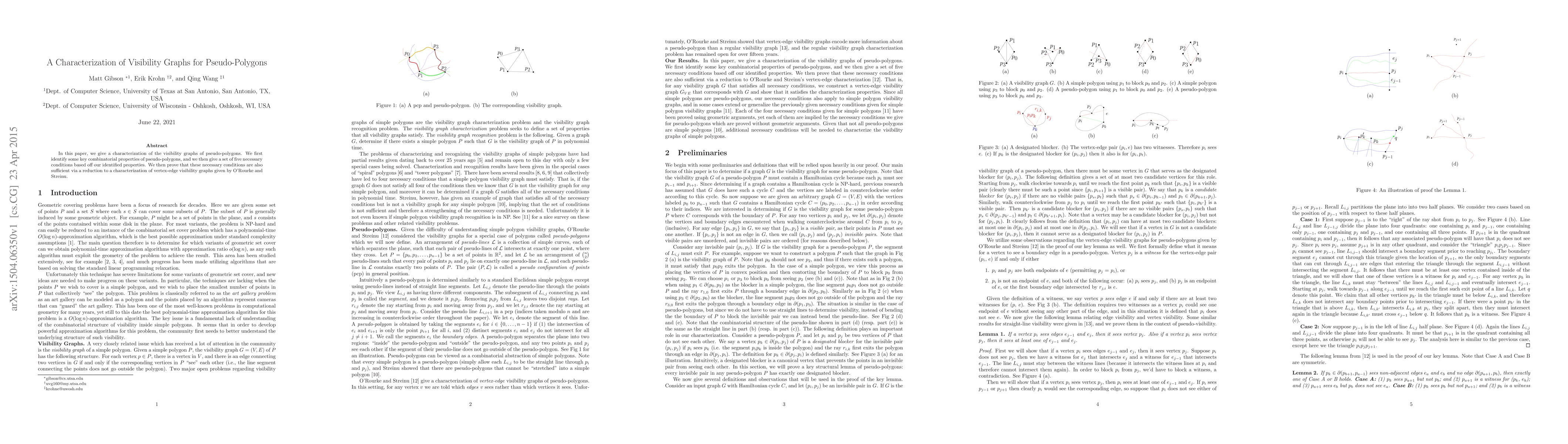 This paper characterizes the visibility graphs of pseudo-polygons by identifying key combinatorial properties and providing five necessary conditions. It proves these conditions are also sufficient through a reduction to O'Rourke and Streinu's characterization of vertex-edge visibility graphs.