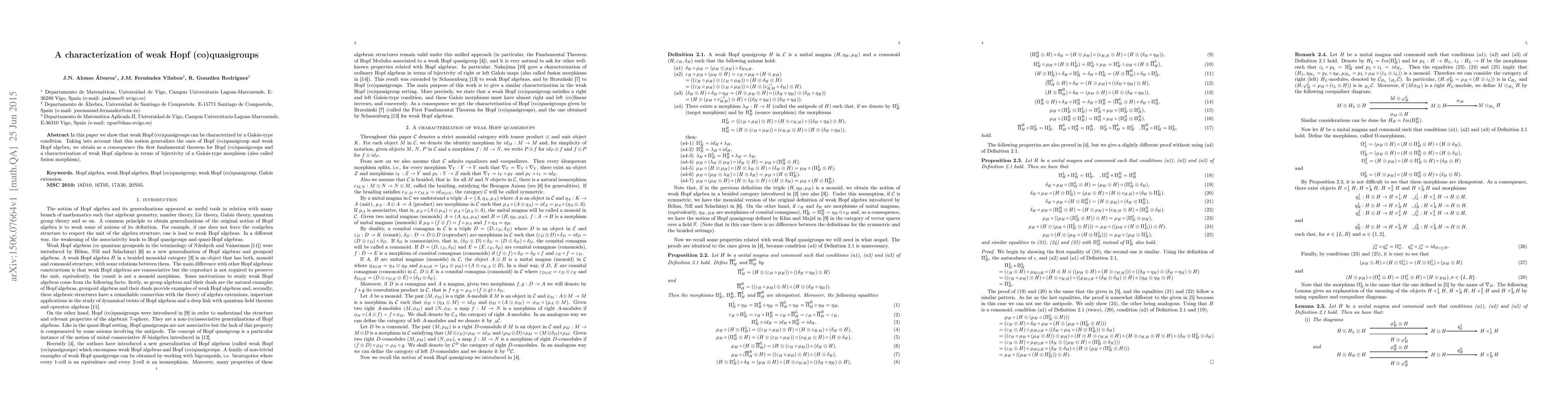 This paper characterizes weak Hopf (co)quasigroups using a Galois-type condition, extending the concepts of Hopf (co)quasigroups and weak Hopf algebras. It derives the first fundamental theorem for Hopf (co)quasigroups and defines weak Hopf algebras via the bijectivity of a Galois-type morphism.