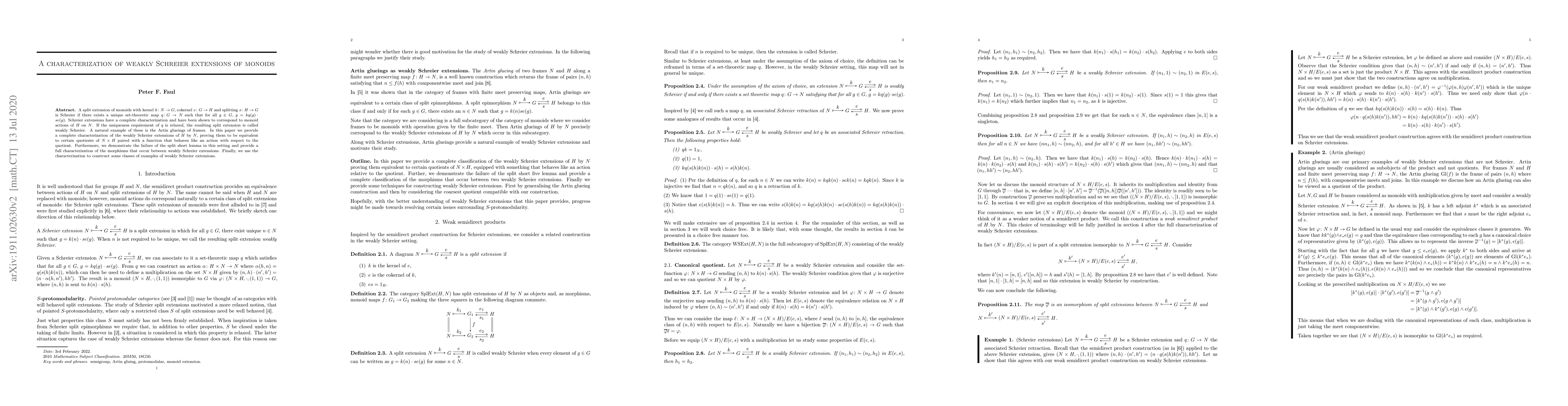 A split extension of monoids with kernel $k \colon N \to G$, cokernel $e \colon G \to H$ and splitting $s \colon H \to G$ is Schreier if there exists a unique set-theoretic map $q \colon G \to N$ such that for all $g \in G$, $g = kq(g) \cdot se(g)$. Schreier extensions have a complete characterization and have been shown to correspond to monoid actions of $H$ on $N$. If the uniqueness requirement of $q$ is relaxed, the resulting split extension is called weakly Schreier. A natural example of these is the Artin glueings of frames. In this paper we provide a complete characterization of the weakly Schreier extensions of $H$ by $N$, proving them to be equivalent to certain quotients of $N \times H$ paired with a function that behaves like an action with respect to the quotient. Furthermore, we demonstrate the failure of the split short lemma in this setting and provide a full characterization of the morphisms that occur between weakly Schreier extensions. Finally, we use the characterization to construct some classes of examples of weakly Schreier extensions.