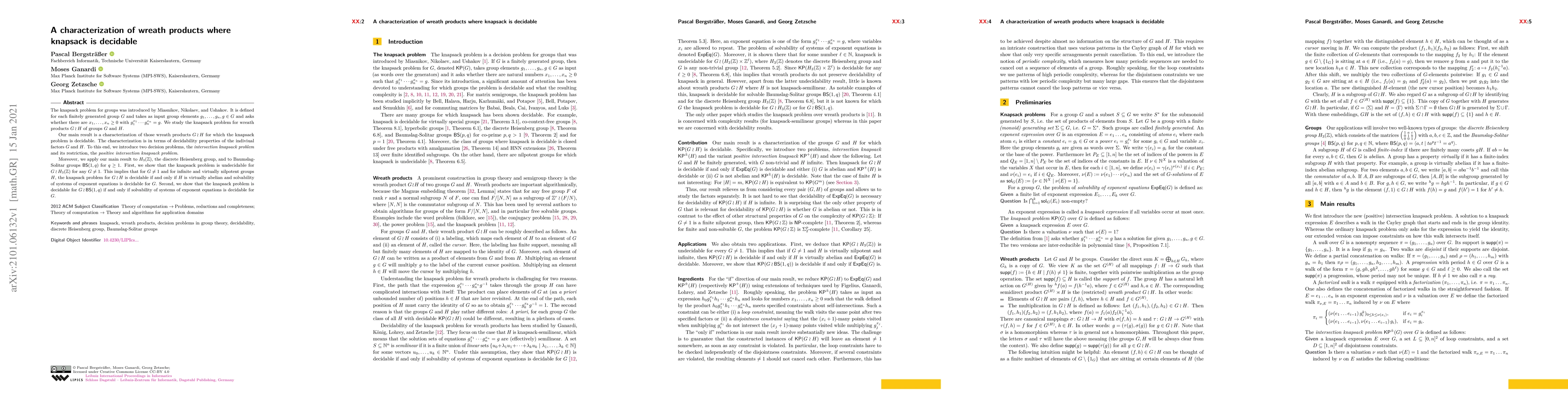 This paper characterizes wreath products $G\wr H$ for which the knapsack problem is decidable, establishing a connection between the decidability of the knapsack problem and the properties of the individual groups $G$ and $H$. It demonstrates that for $G\wr H_3(\mathbb{Z})$, the knapsack problem is undecidable unless $G$ is trivial, while for $G\wr \mathsf{BS}(1,q)$, decidability depends on the solvability of systems of exponent equations for $G$.