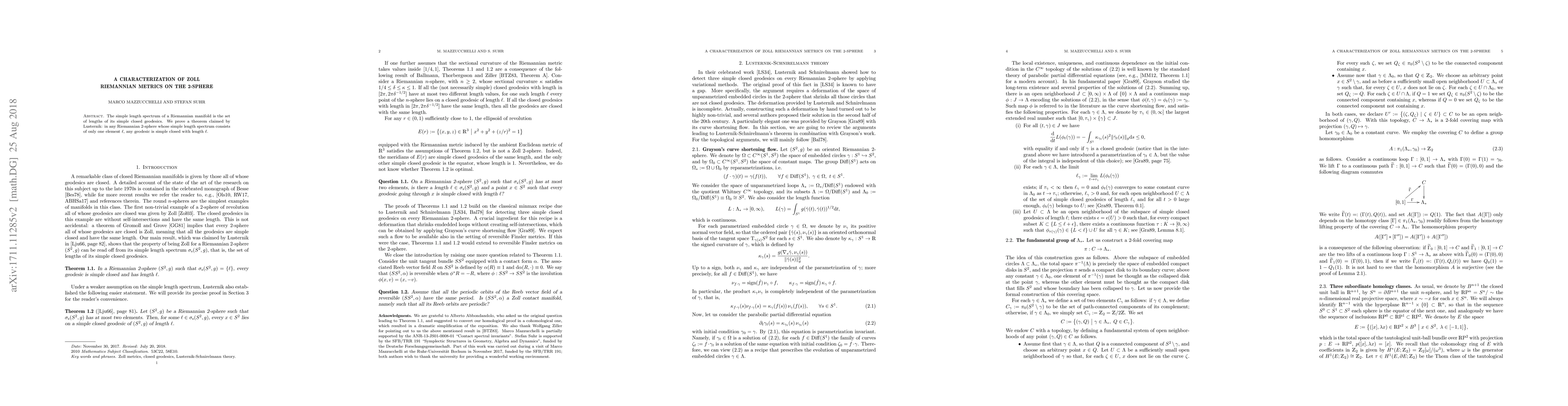 This paper proves a theorem by Lusternik stating that on a 2-sphere with a single length spectrum element, every geodesic is a simple closed curve of that length.