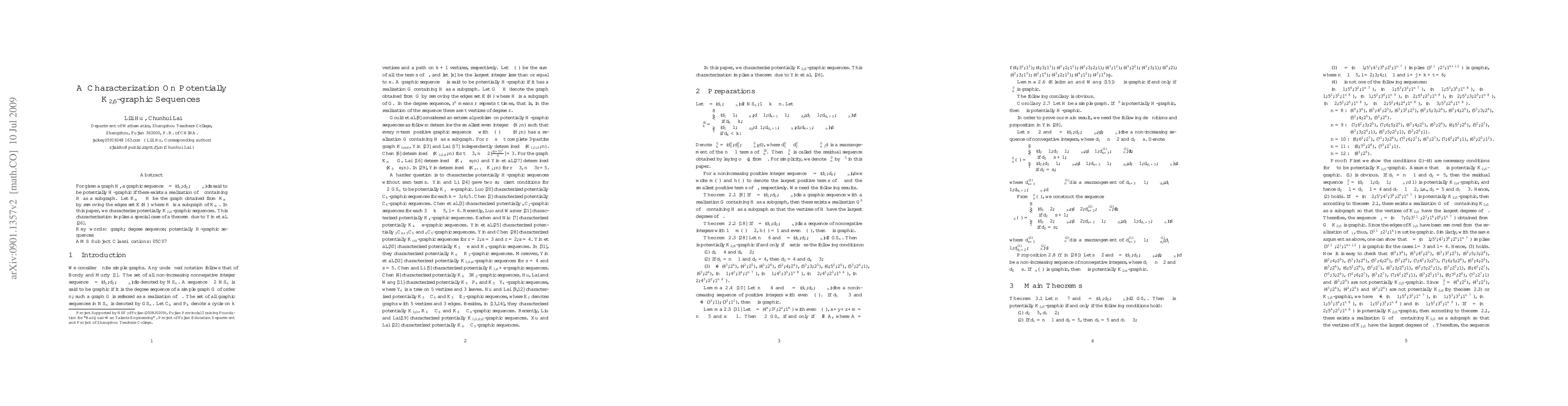 For given a graph $H$, a graphic sequence $\pi=(d_1,d_2,...,d_n)$ is said to be potentially $H$-graphic if there exists a realization of $\pi$ containing $H$ as a subgraph. Let $K_m-H$ be the graph obtained from $K_m$ by removing the edges set $E(H)$ where $H$ is a subgraph of $K_m$. In this paper, we characterize potentially $K_{2,5}$-graphic sequences. This characterization implies a special case of a theorem due to Yin et al. [26].