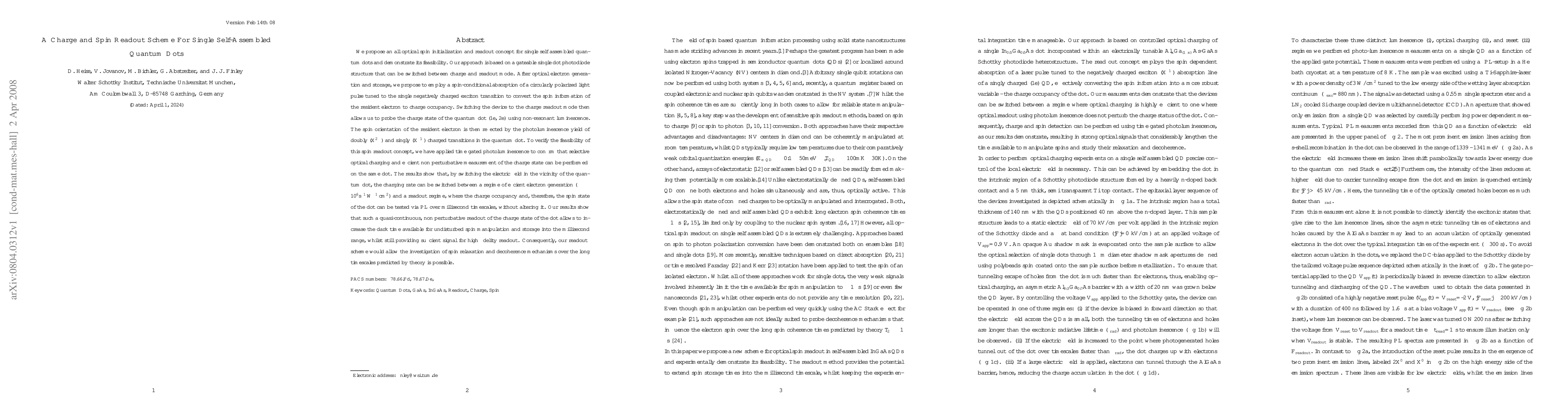 The paper introduces a novel charge and spin readout scheme for single self-assembled quantum dots, based on a gateable single dot photodiode structure that can switch between charge and readout modes.