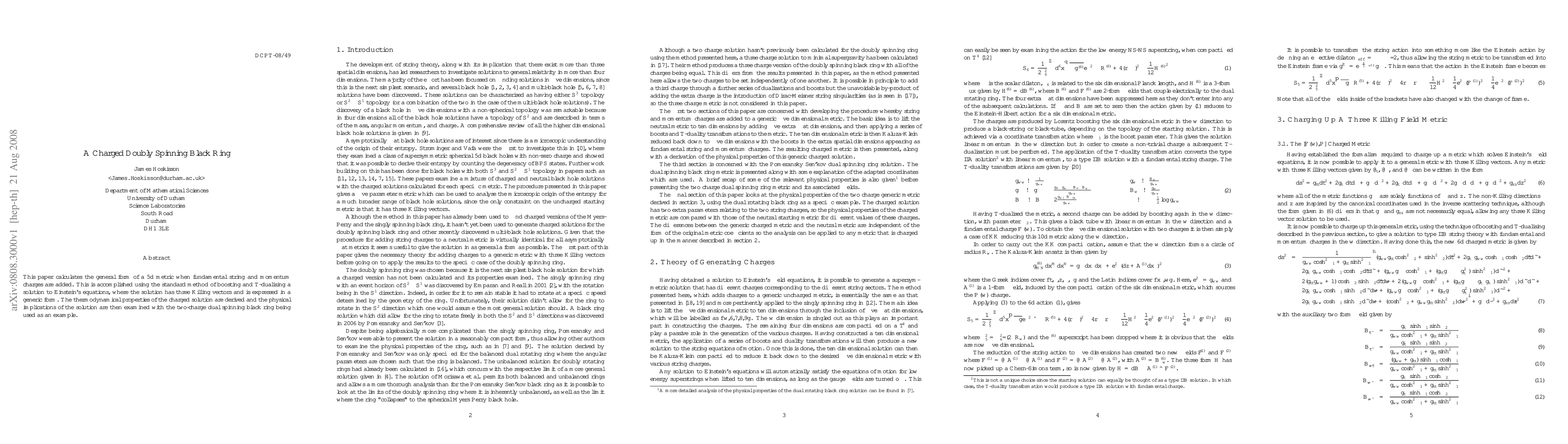 This paper calculates the general form of a 5d metric when fundamental string and momentum charges are added. This is accomplished using the standard method of boosting and T-dualising a solution to Einstein's equations, where the solution has three Killing vectors and is expressed in a generic form. The thermodynamical properties of the charged solution are derived and the physical implications of the solution are then examined with the two-charge dual spinning black ring being used as an example.