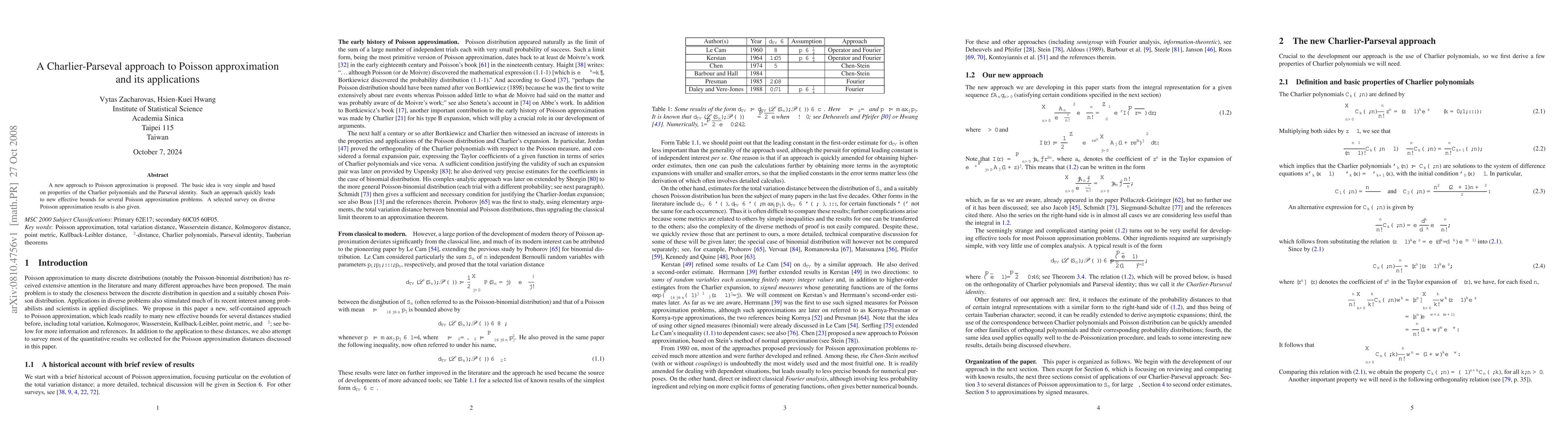 A new approach to Poisson approximation is proposed. The basic idea is very simple and based on properties of the Charlier polynomials and the Parseval identity. Such an approach quickly leads to new effective bounds for several Poisson approximation problems. A selected survey on diverse Poisson approximation results is also given.