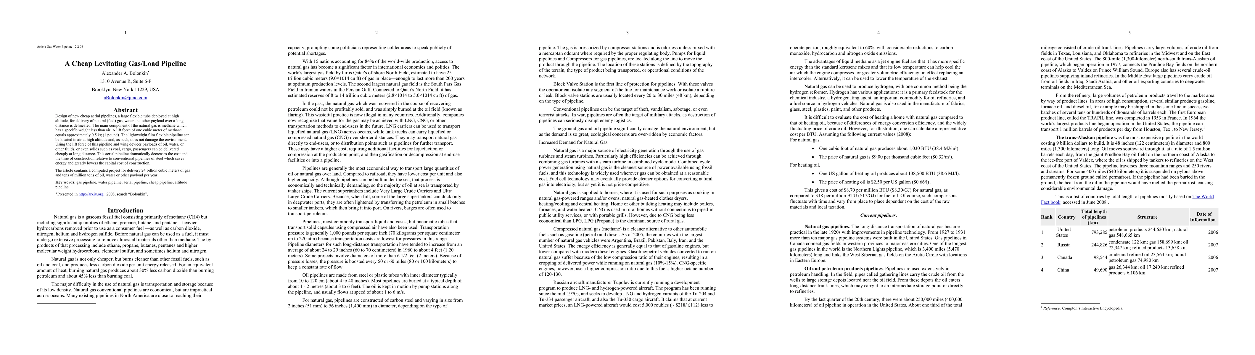 The proposed system can deliver billions of cubic meters of gas and tons of payload per year, significantly decreasing energy consumption and capital costs compared to traditional pipelines.