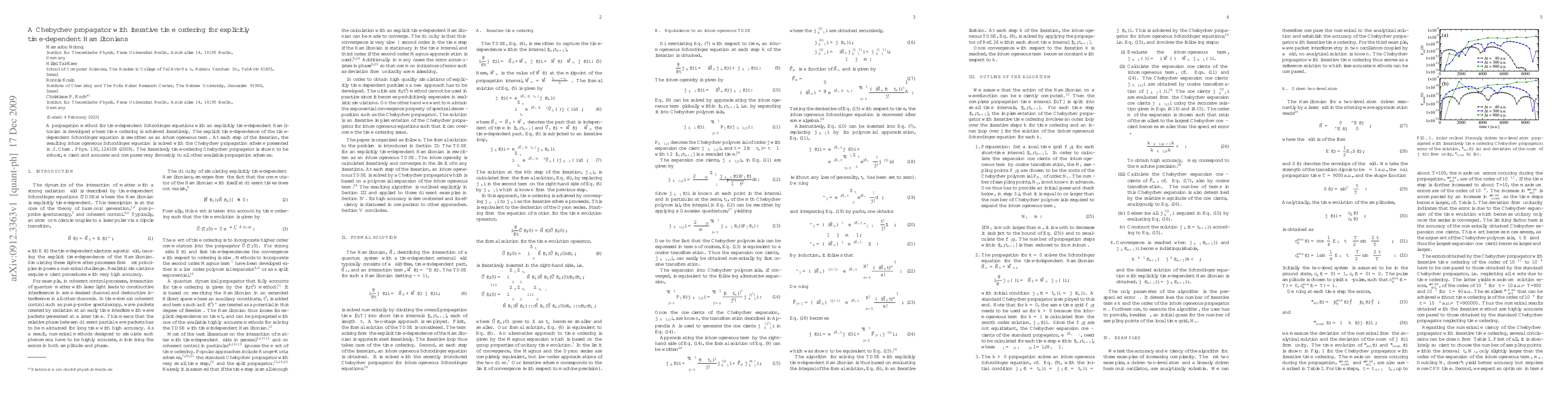 This paper introduces an iterative time-ordering method using the Chebychev propagator for solving time-dependent Schrödinger equations with explicit time-dependent Hamiltonians. The method iteratively solves an inhomogeneous Schrödinger equation at each step, demonstrating robustness, efficiency, and accuracy compared to other propagation schemes.