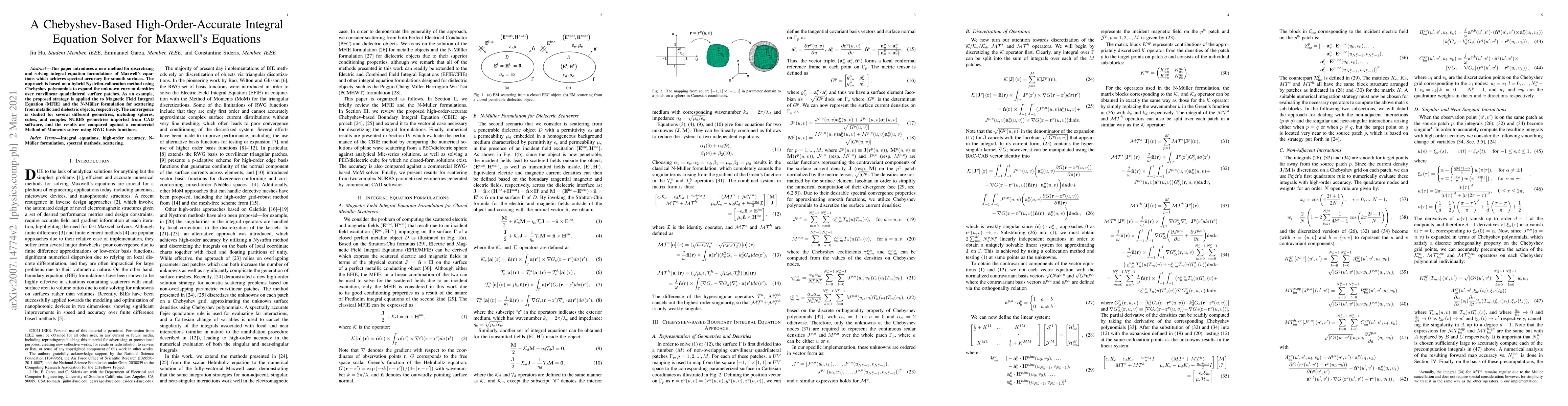 A new method for solving Maxwell's equations using a Chebyshev-based Nystr"om-collocation approach achieves spectral accuracy for smooth surfaces, outperforming commercial solvers in various complex geometries.