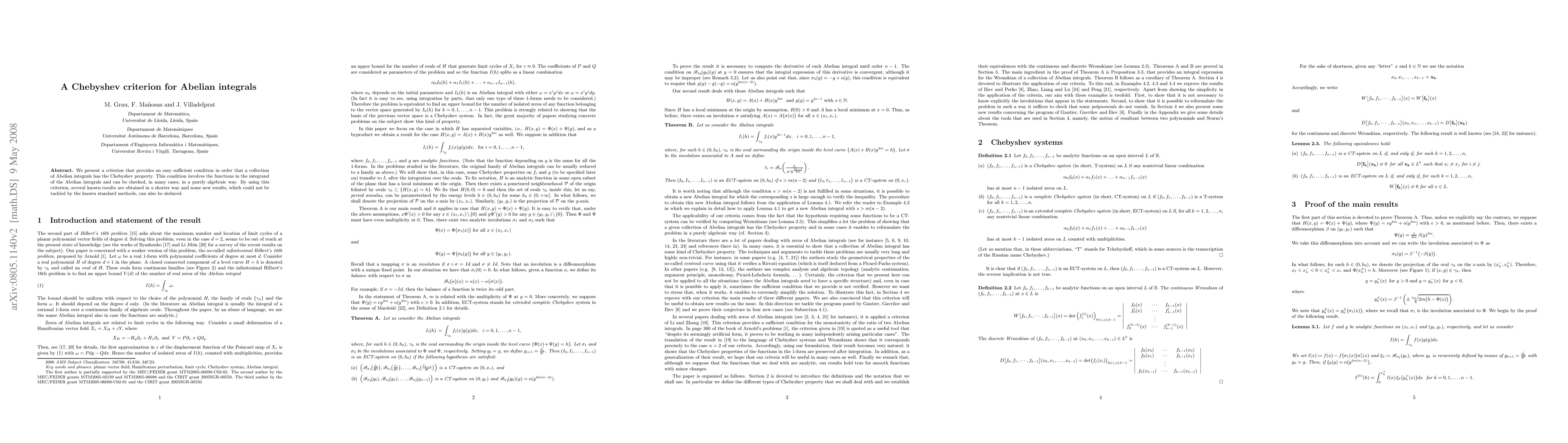 A new criterion is presented to determine when a collection of Abelian integrals has the Chebyshev property, providing a simpler way to analyze known results and tackle previously unsolvable problems.