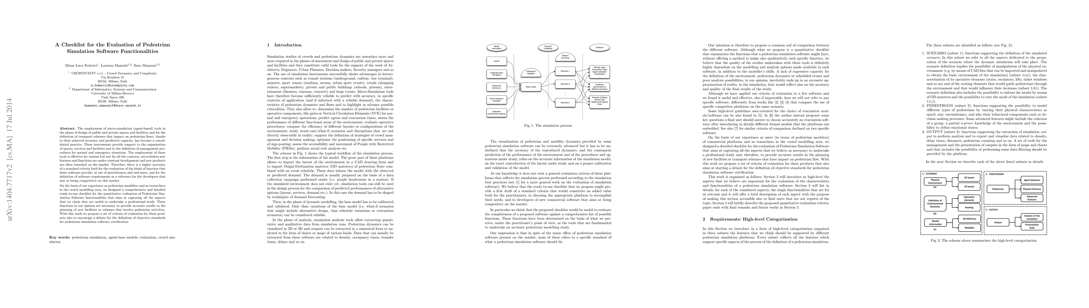 The employment of micro-simulation (agent-based) tools in the phase of design of public and private spaces and facilities and for the definition of transport schemes that impact on pedestrian flows, thanks to their achieved accuracy and predictive capacity, has become a consolidated practice. These instruments provide support to the organization of spaces, services and facilities and to the definition of management procedures for normal and emergency situations. The employment of these tools is effective for various but not for all the contexts, nevertheless new features and functions are under constant development and new products are often launched on the market. Therefore, there is a higher necessity of a standard criteria both for the evaluation of the kinds of function that these software provide, at use of practitioners and end-users, and for the definition of software requirements as a reference for the developers that aim at being competitive on this market. On the basis of our experience as pedestrian modellers and as researchers in the crowd modelling area, we designed a comprehensive and detailed ready-to-use checklist for the quantitative evaluation of Pedestrian Simulation Software functionalities that aims at capturing all the aspects that we claim that are useful to undertake a professional study. These functions in our opinion are necessary to provide accurate results in the planning of new facilities or schemes that involve pedestrian activities. With this work we propose a set of criteria of evaluation for these products also to encourage a debate for the definition of objective standards for pedestrian simulation software certification.