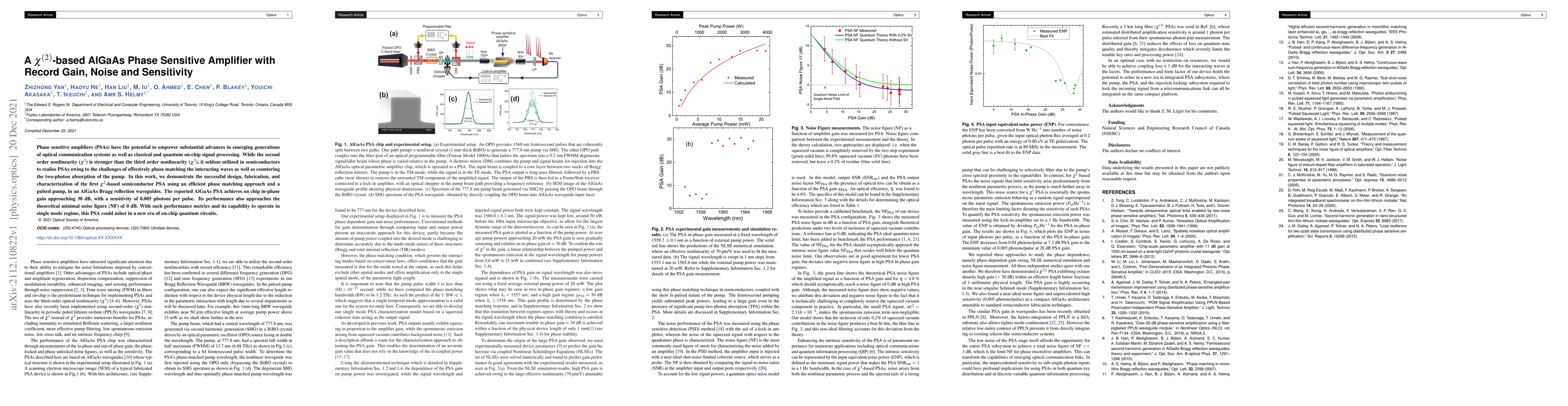Phase sensitive amplifiers (PSAs) have the potential to empower substantial advances in emerging generations of optical communication systems as well as classical and quantum on-chip signal processing. The core building block of a PSA is a nonlinear medium. While the second-order nonlinearity ($\chi^{(2)}$) is stronger than the third-order nonlinearity ($\chi^{(3)}$), it is used less often in semiconductors for parametric amplification owing to the challenges of effectively phase matching the interacting waves as well as two-photon absorption of the pump. In this work, we demonstrate the successful design, fabrication, and characterization of the first $\chi^{(2)}$-based semiconductor PSA using an efficient phase matching approach and a pulsed pump, based on an aluminium gallium arsenide (AlGaAs) waveguide platform. Non-centrosymmetric semiconductors such as AlGaAs offer appreciable $\chi^{(2)}$. Such waveguides also achieve more than one order of magnitude greater pump field confinement when compared to other materials with large $\chi^{(2)}$ such as Periodically Poled Lithium Niobate (PPLN). Our AlGaAs PSA achieves an on-chip in-phase gain, a sensitivity of 0.005 photons per pulse, and approaches theoretical minimal noise figure (NF) of 0~dB. With the capability of operating on signal states with sub-single photons per pulse, our PSA could usher in a new era of on-chip quantum circuits.