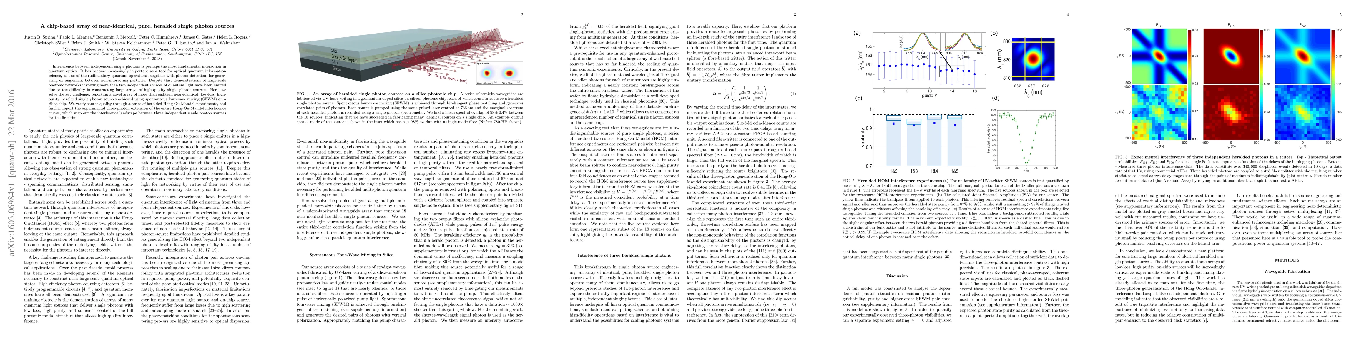 Interference between independent single photons is perhaps the most fundamental interaction in quantum optics. It has become increasingly important as a tool for optical quantum information science, as one of the rudimentary quantum operations, together with photon detection, for generating entanglement between non-interacting particles. Despite this, demonstrations of large-scale photonic networks involving more than two independent sources of quantum light have been limited due to the difficulty in constructing large arrays of high-quality single photon sources. Here, we solve the key challenge, reporting a novel array of more than eighteen near-identical, low-loss, high-purity, heralded single photon sources achieved using spontaneous four-wave mixing (SFWM) on a silica chip. We verify source quality through a series of heralded Hong-Ou-Mandel experiments, and further report the experimental three-photon extension of the entire Hong-Ou-Mandel interference curves, which map out the interference landscape between three independent single photon sources for the first time.