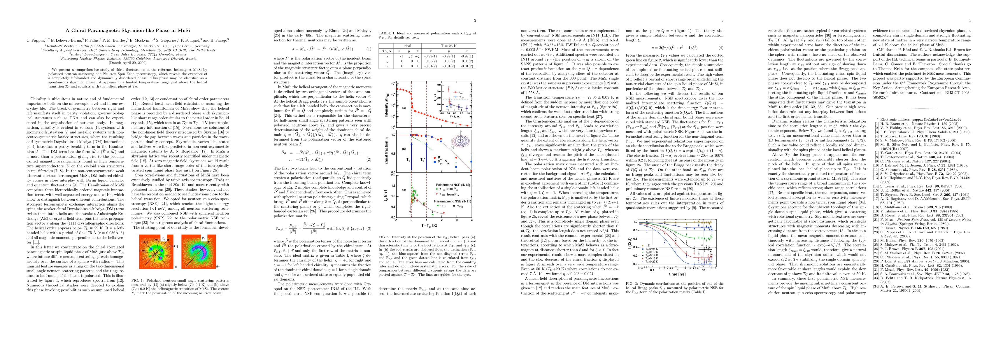 This study reveals a chiral paramagnetic skyrmion-like phase in MnSi, identified through polarized neutron scattering and neutron spin echo spectroscopy, existing in a narrow temperature range above the helical transition. This left-handed, dynamically disordered phase coexists with the helical phase at the transition temperature Tc.