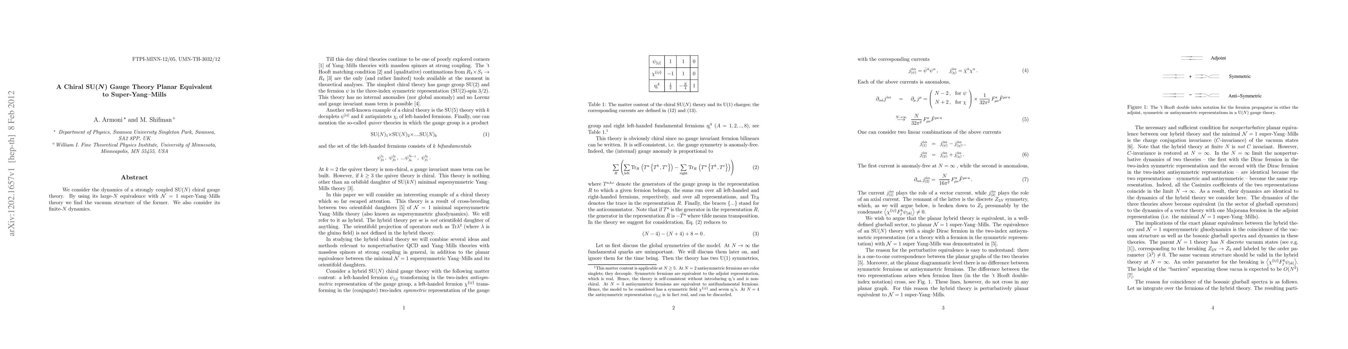 This paper explores a strongly coupled SU(N) chiral gauge theory, establishing its large-N equivalence with N=1 super-Yang-Mills theory to determine its vacuum structure, and also investigates its dynamics at finite N.