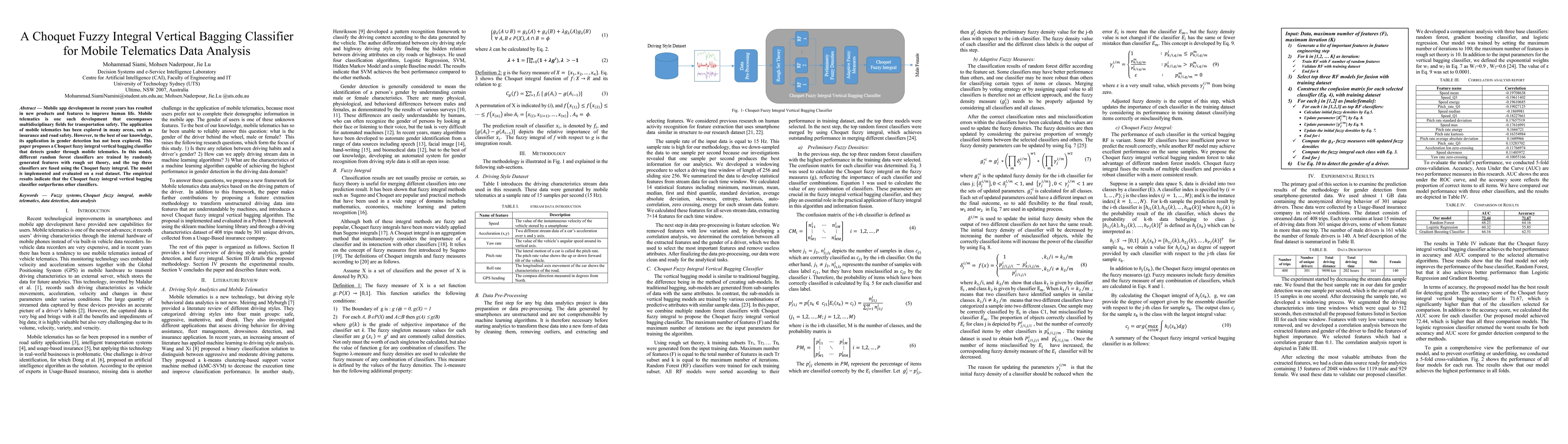 This paper proposes a novel Choquet fuzzy integral vertical bagging classifier for gender detection in mobile telematics data. The model trains multiple random forest classifiers using randomly generated features and fuses the top three using the Choquet fuzzy integral, achieving superior performance compared to other classifiers, as demonstrated on a real dataset.