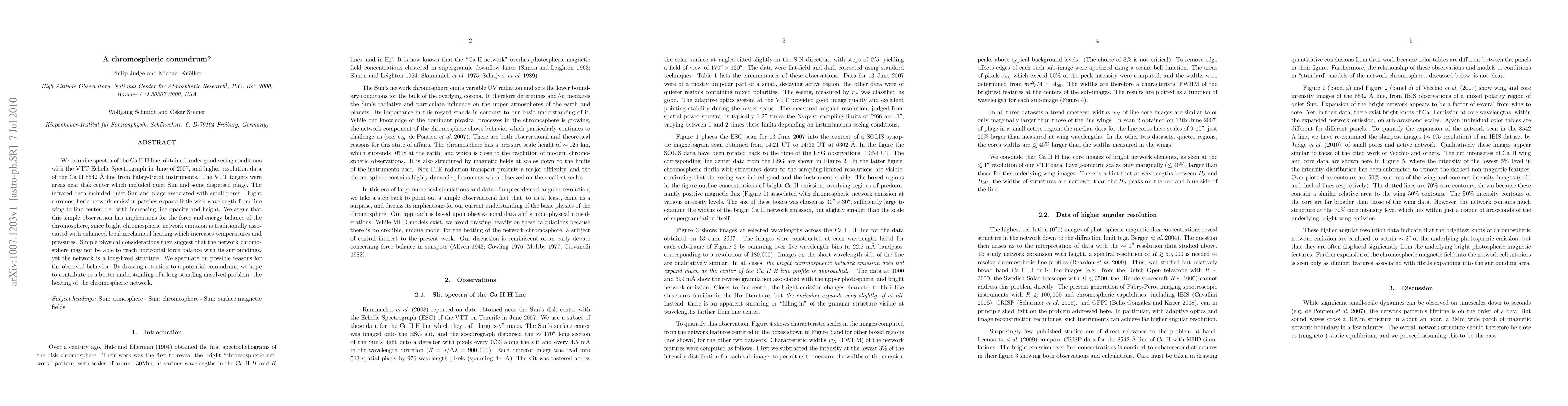 Researchers studied chromospheric emissions and found that bright patches in the Sun's atmosphere do not expand with increasing wavelength, challenging traditional understanding of heating mechanisms.
