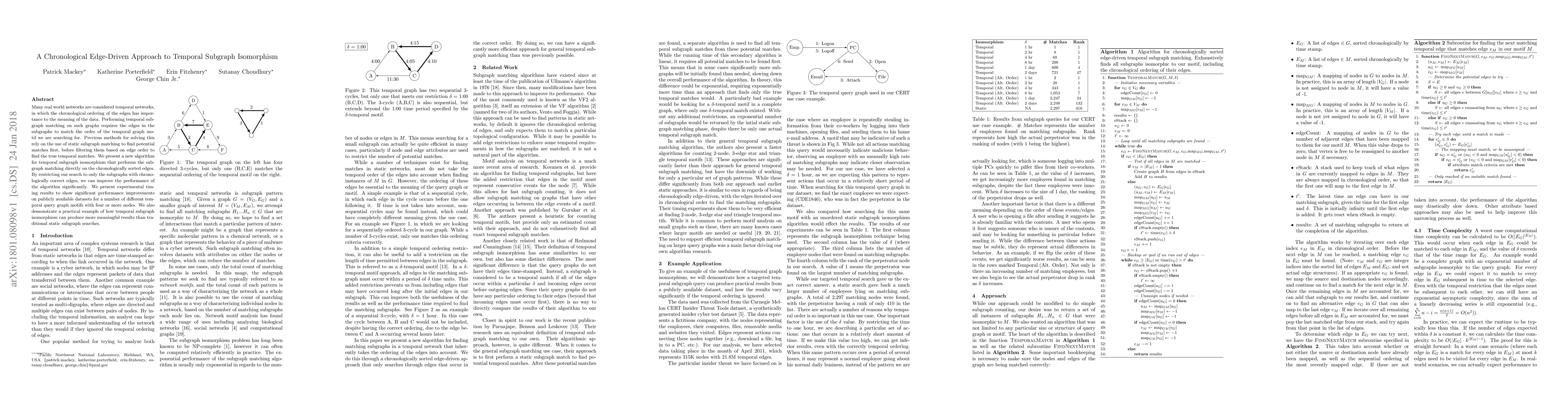 This paper introduces a new algorithm for temporal subgraph isomorphism that directly matches chronologically sorted edges, improving performance over traditional static subgraph matching methods. Experimental results show significant speedups on various temporal datasets and demonstrate the algorithm's ability to produce more meaningful results.