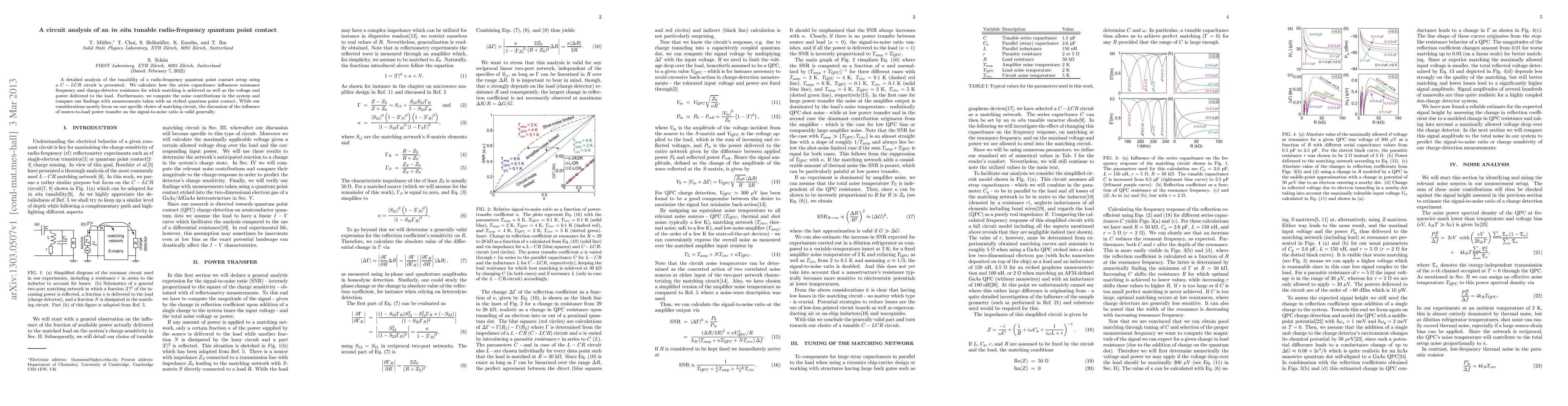 Researchers analyzed a radio-frequency quantum point contact setup using a C-LCR circuit to improve its tunability, calculating resonance frequency, charge-detector resistance, voltage, and power delivered to the load.