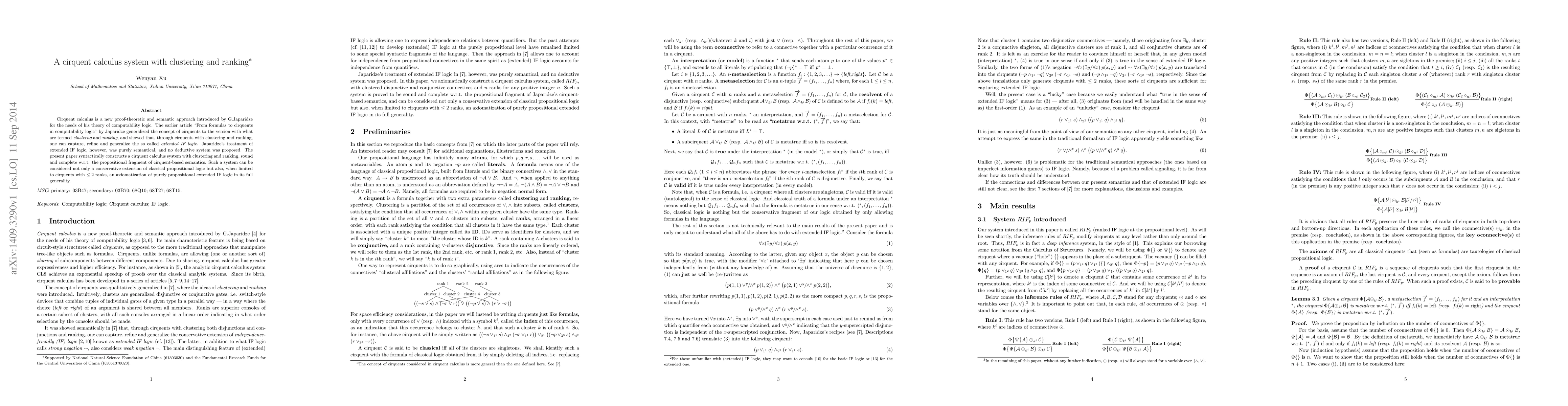Cirquent calculus is a new proof-theoretic and semantic approach introduced by G.Japaridze for the needs of his theory of computability logic. The earlier article "From formulas to cirquents in computability logic" by Japaridze generalized the concept of cirquents to the version with what are termed clusterng and ranking, and showed that, through cirquents with clustering and ranking, one can capture, refine and generalize the so called extended IF logic. Japaridze's treatment of extended IF logic, however, was purely semantical, and no deductive system was proposed. The present paper syntactically constructs a cirquent calculus system with clustering and ranking, sound and complete w.r.t. the propositional fragment of cirquent-based semantics. Such a system can be considered not only a conservative extension of classical propositional logic but also, when limited to cirquents with no more than 2 ranks, an axiomatization of purely propositional extended IF logic in its full generality.