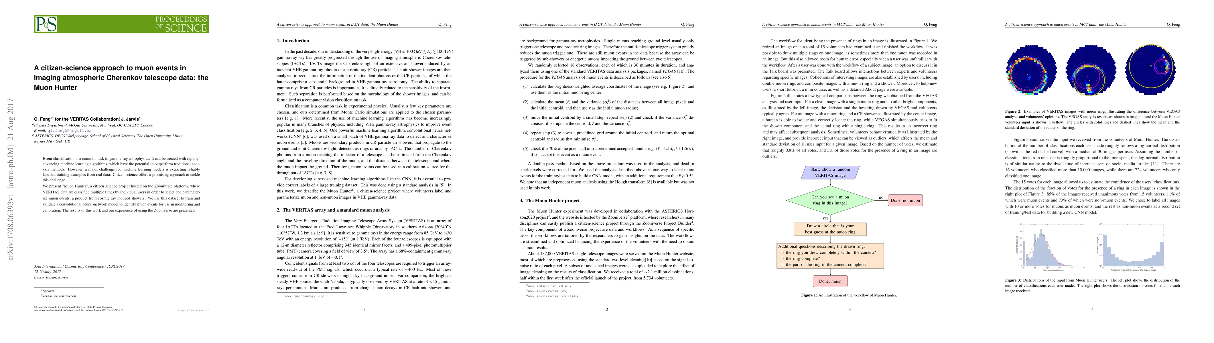 This paper introduces "Muon Hunter," a citizen science project leveraging Zooniverse to classify muon events in VERITAS atmospheric Cherenkov telescope data. The project aims to address the challenge of obtaining reliable labeled training data for machine learning models, ultimately training a convolutional neural network to identify muon events for monitoring and calibration.