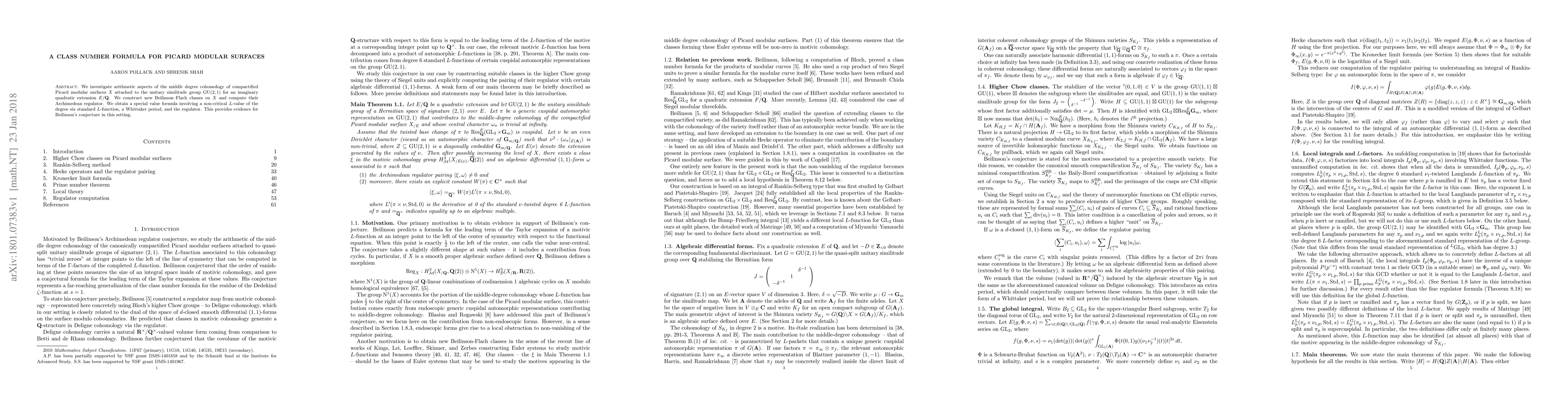 The paper develops a class number formula for Picard modular surfaces, constructing new Beilinson-Flach classes and computing their Archimedean regulator, leading to a special value formula that supports Beilinson's conjecture in this context.