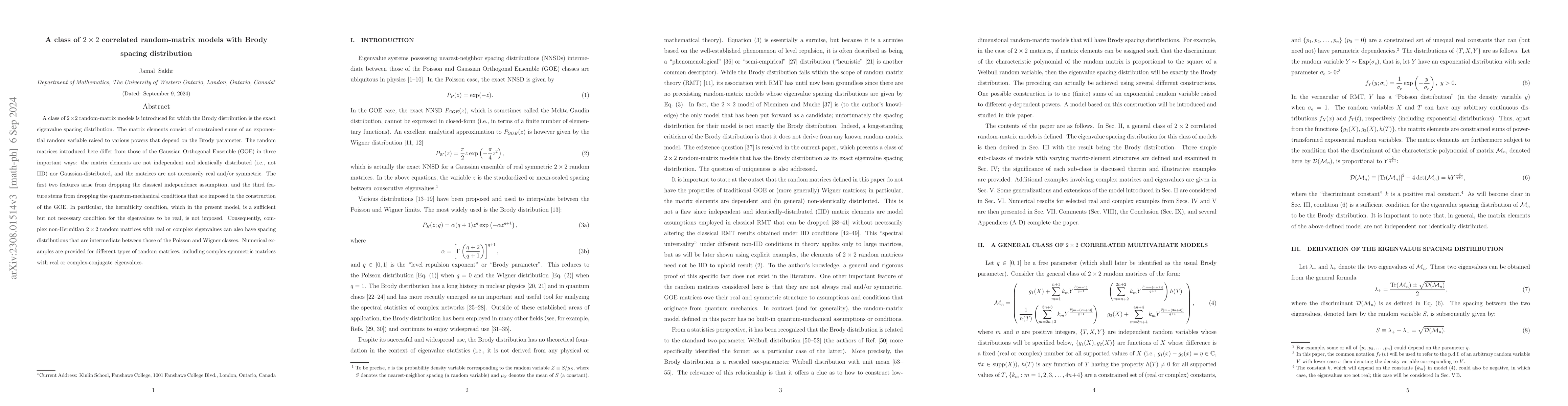 A class of 2x2 random-matrix models was introduced for which the Brody distribution is the exact eigenvalues pacing distribution.