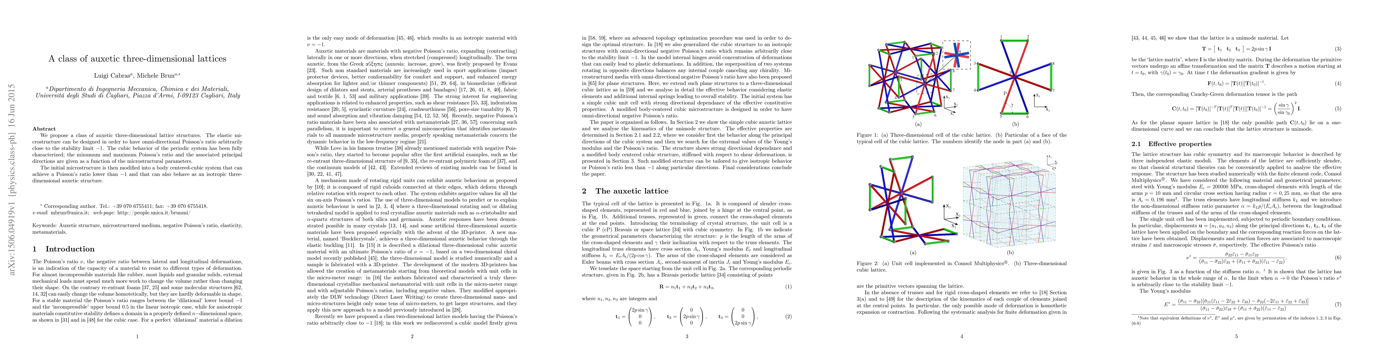 This paper introduces a novel class of auxetic three-dimensional lattice structures capable of achieving an omni-directional Poisson's ratio arbitrarily close to -1, with detailed characterization of their cubic behavior and modification into a body-centered cubic system for isotropic auxetic properties.