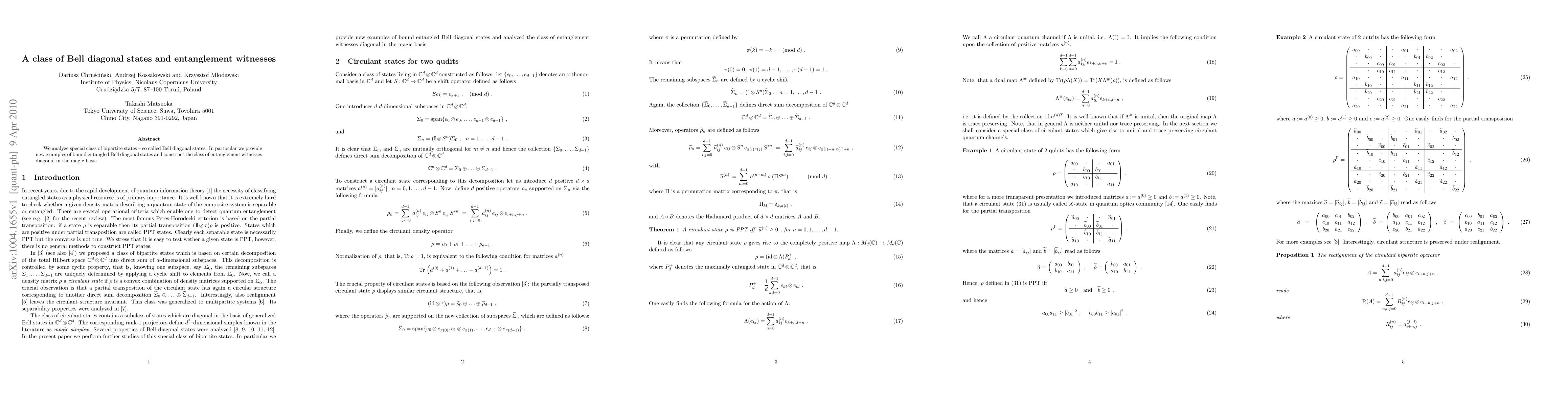 Summary: This paper explores Bell diagonal states, introducing new examples of bound entangled states within this class and developing entanglement witnesses that are diagonal in the magic basis.