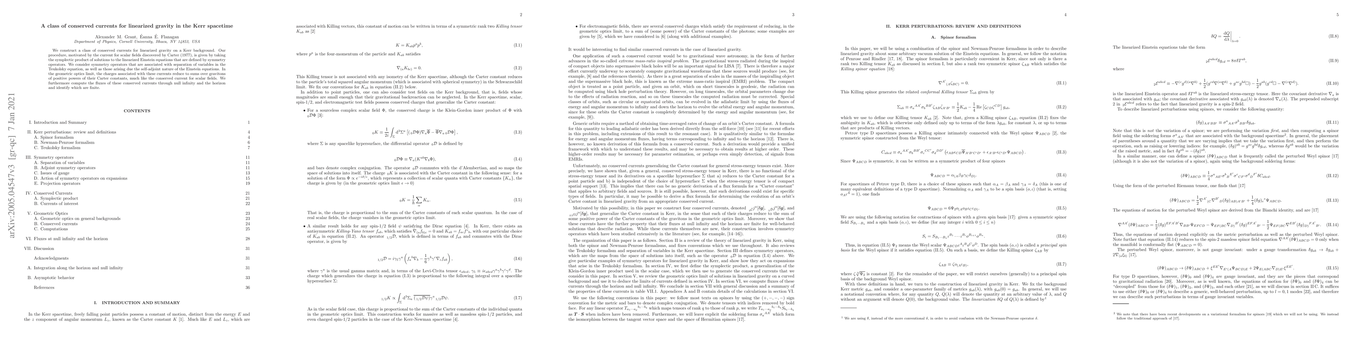 We construct a class of conserved currents for linearized gravity on a Kerr background. Our procedure, motivated by the current for scalar fields discovered by Carter (1977), is given by taking the symplectic product of solutions to the linearized Einstein equations that are defined by symmetry operators. We consider symmetry operators that are associated with separation of variables in the Teukolsky equation, as well as those arising due the self-adjoint nature of the Einstein equations. In the geometric optics limit, the charges associated with these currents reduce to sums over gravitons of positive powers of their Carter constants, much like the conserved current for scalar fields. We furthermore compute the fluxes of these conserved currents through null infinity and the horizon and identify which are finite.