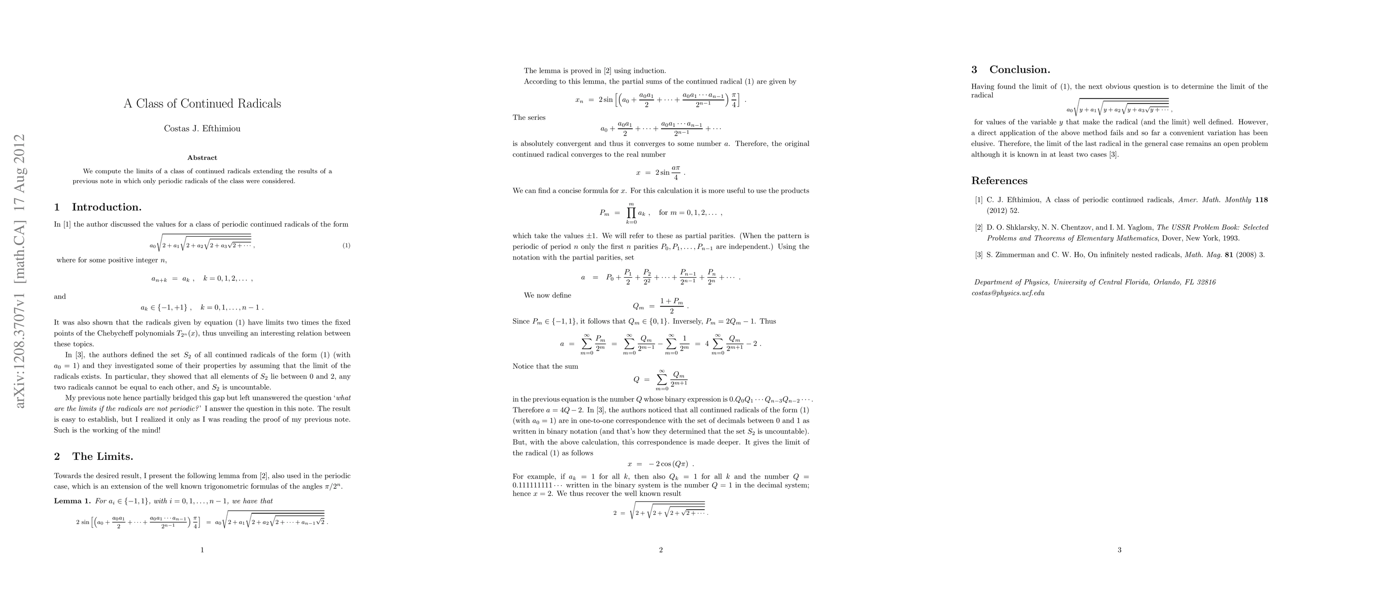 We compute the limits of a class of continued radicals extending the results of a previous note in which only periodic radicals of the class were considered.