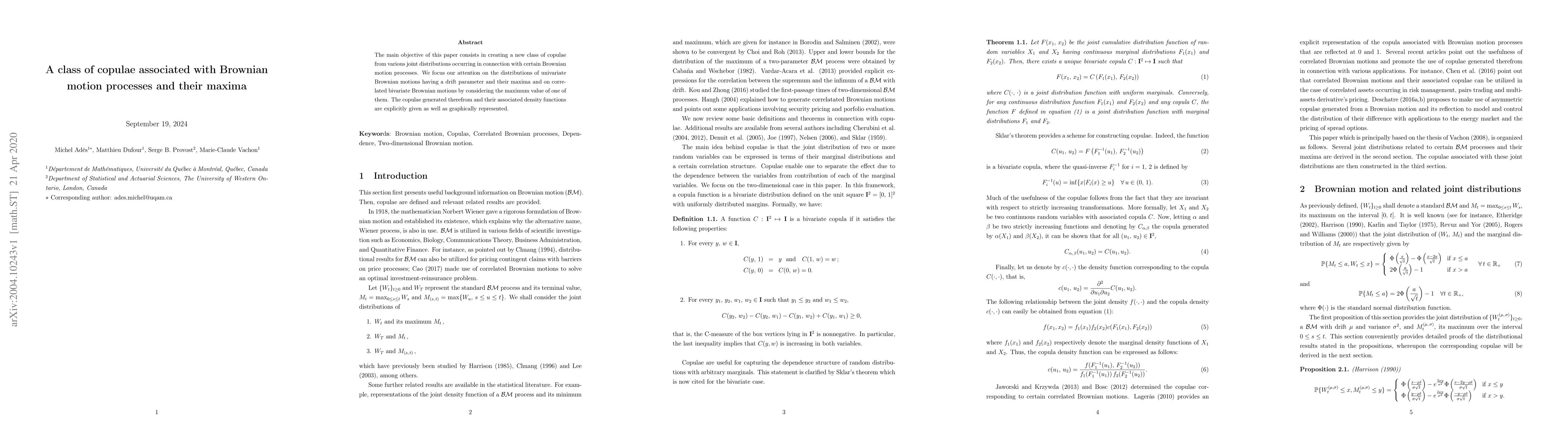 This paper introduces a new class of copulae derived from joint distributions linked to Brownian motion processes, particularly focusing on univariate and bivariate Brownian motions and their maxima. The resulting copulae and their density functions are explicitly provided and illustrated graphically.