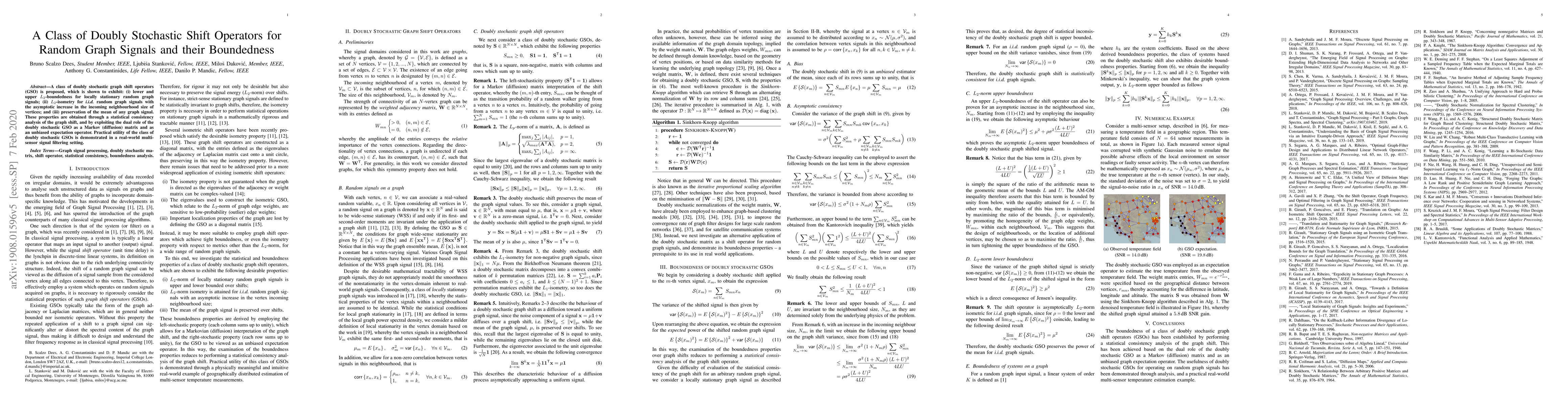 A class of doubly stochastic graph shift operators (GSO) is proposed, which is shown to exhibit: (i) lower and upper $L_{2}$-boundedness for locally stationary random graph signals; (ii) $L_{2}$-isometry for \textit{i.i.d.} random graph signals with the asymptotic increase in the incoming neighbourhood size of vertices; and (iii) preservation of the mean of any graph signal. These properties are obtained through a statistical consistency analysis of the graph shift, and by exploiting the dual role of the doubly stochastic GSO as a Markov (diffusion) matrix and as an unbiased expectation operator. Practical utility of the class of doubly stochastic GSOs is demonstrated in a real-world multi-sensor signal filtering setting.