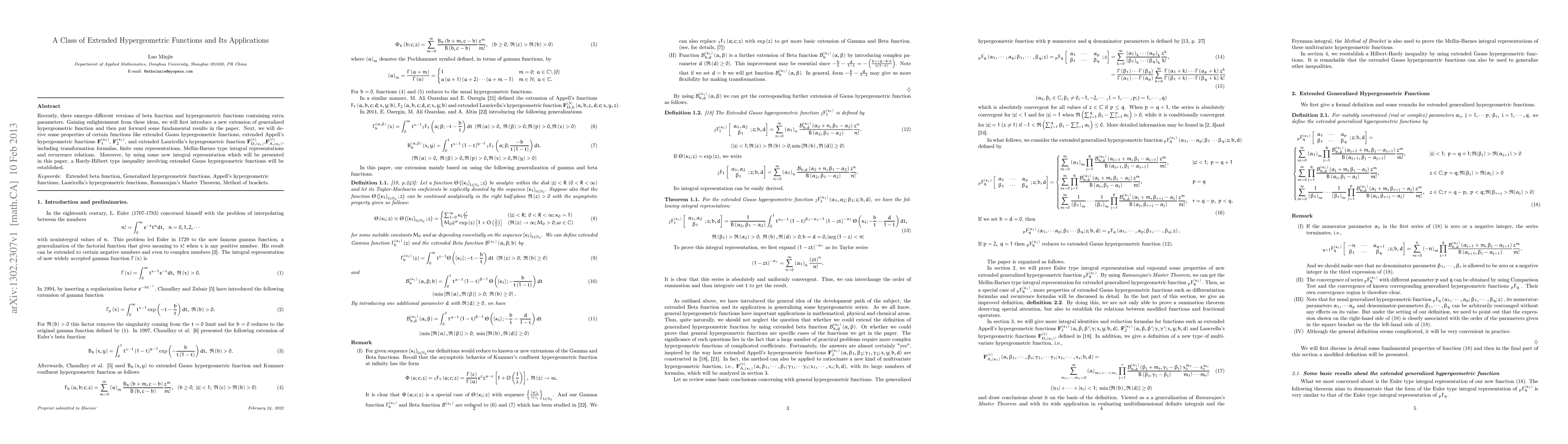 This paper introduces an extended version of generalized hypergeometric functions, deriving properties such as transformation formulas and recurrence relations for functions like extended Gauss, Appell's, and Lauricella hypergeometric functions. It also establishes a Hardy-Hilbert type inequality using a new integral representation.