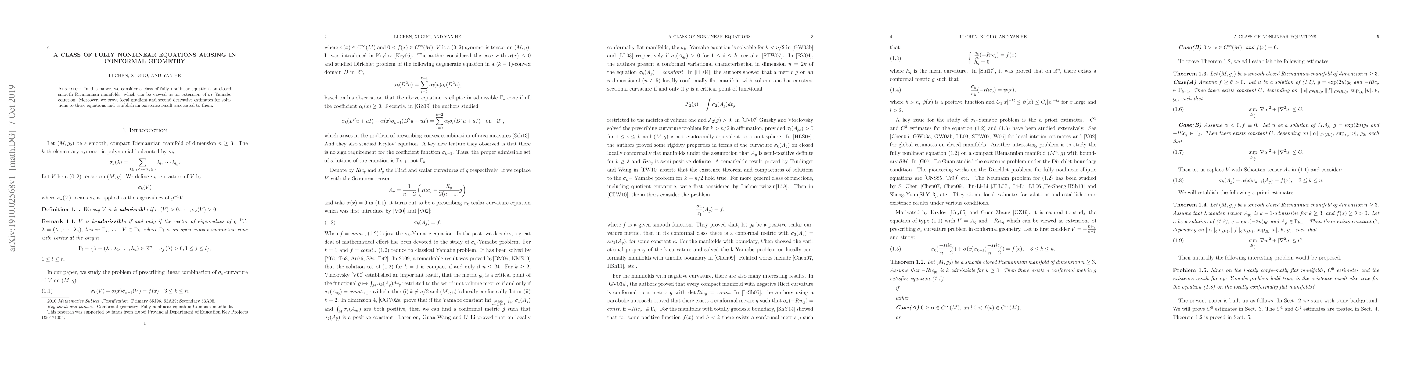 In this paper, we consider a class of fully nonlinear equations on closed smooth Riemannian manifolds, which can be viewed as an extension of $\sigma_k$ Yamabe equation. Moreover, we prove local gradient and second derivative estimates for solutions to these equations and establish an existence result associated to them.