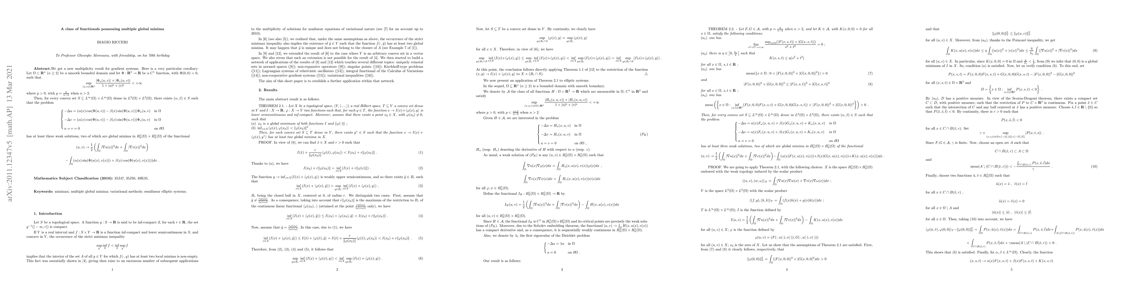 Researchers have proven that a specific class of functionals can have multiple global minima for a particular type of partial differential equation problem, leading to at least three weak solutions with two being global minima.