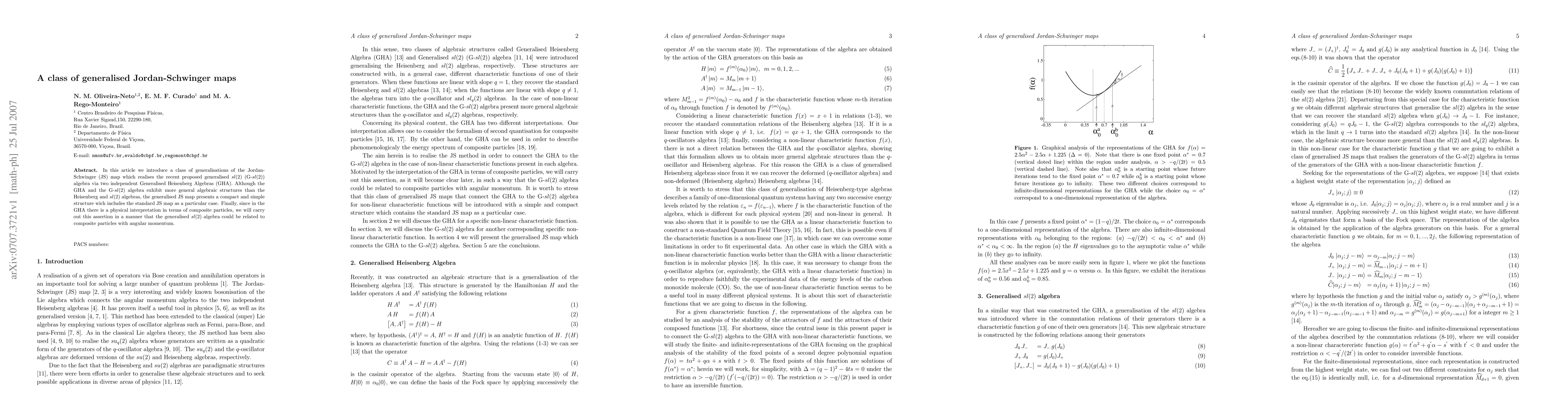 In this article we introduce a class of generalisations of the Jordan-Schwinger (JS) map which realises the recent proposed generalised sl(2) (G-sl(2)) algebra via two independent Generalised Heisenberg Algebras (GHA). Although the GHA and the G-sl(2) algebra exhibit more general algebraic structures than the Heisenberg and sl(2) algebras, the generalised JS map presents a compact and simple structure wich includes the standard JS map as a particular case. Finally, since in the GHA there is a physical interpretation in terms of composite particles, we will carry out this assertion in a manner that the generalised sl(2) algebra could be related to composite particles with angular momentum.