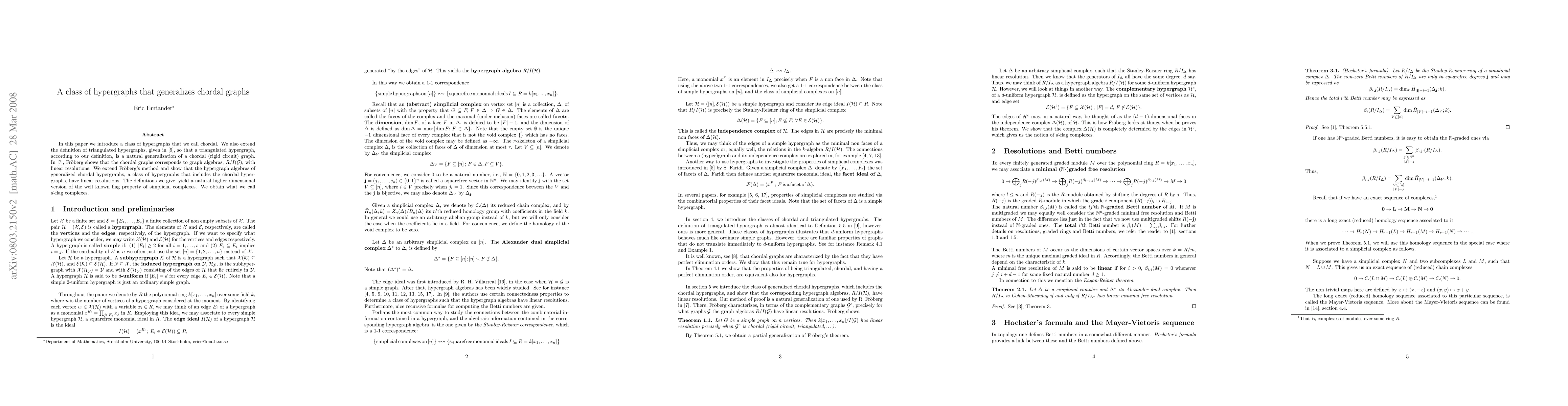 This paper introduces a class of hypergraphs called chordal hypergraphs, which generalize chordal graphs. It extends the concept of triangulated hypergraphs to naturally encompass chordal graphs and demonstrates that the hypergraph algebras of these generalized chordal hypergraphs have linear resolutions.