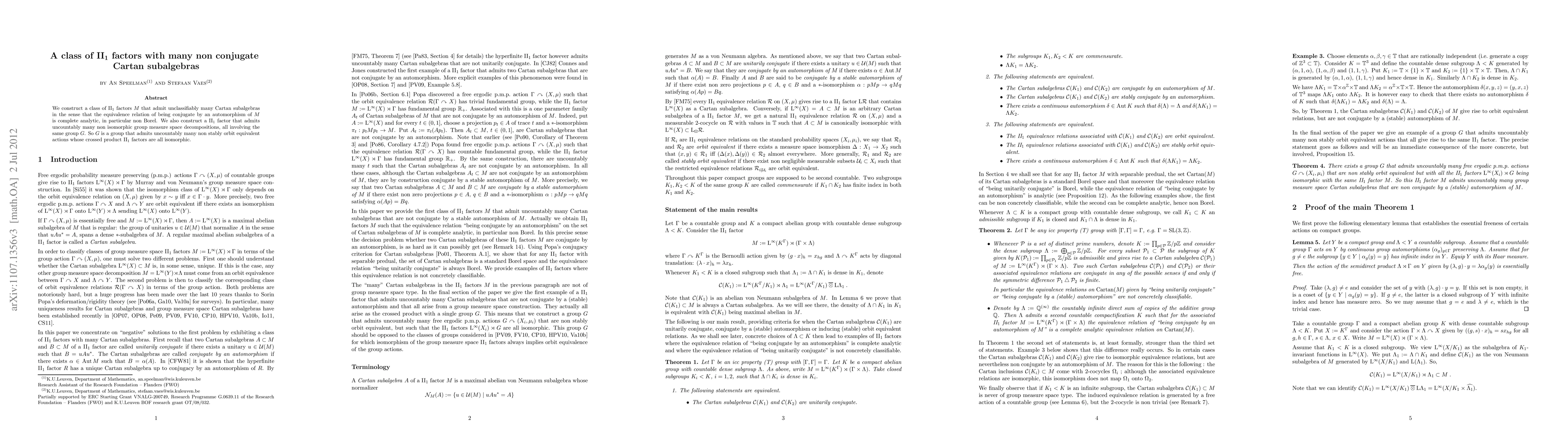 This paper constructs a class of II_1 factors with unclassifiably many non-conjugate Cartan subalgebras, demonstrating that the equivalence relation of these subalgebras is complete analytic and non-Borel. Additionally, it presents a II_1 factor with uncountably many non-isomorphic group measure space decompositions, all involving the same group G, showing G admits uncountably many non-stably orbit equivalent actions with isomorphic crossed product II_1 factors.