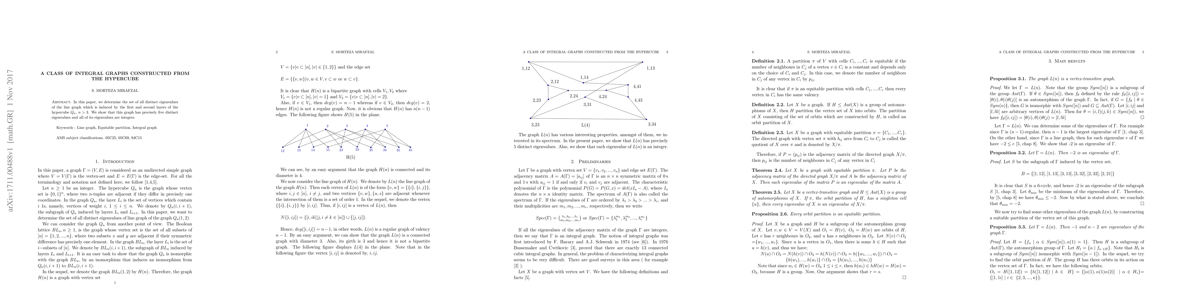 In this paper, we determine the set of all distinct eigenvalues of the line graph which is induced by the first and second layers of the hypercube $ Q_n $, $n>3$. We show that this graph has precisely five distinct eigenvalues and all of its eigenvalues are integers
